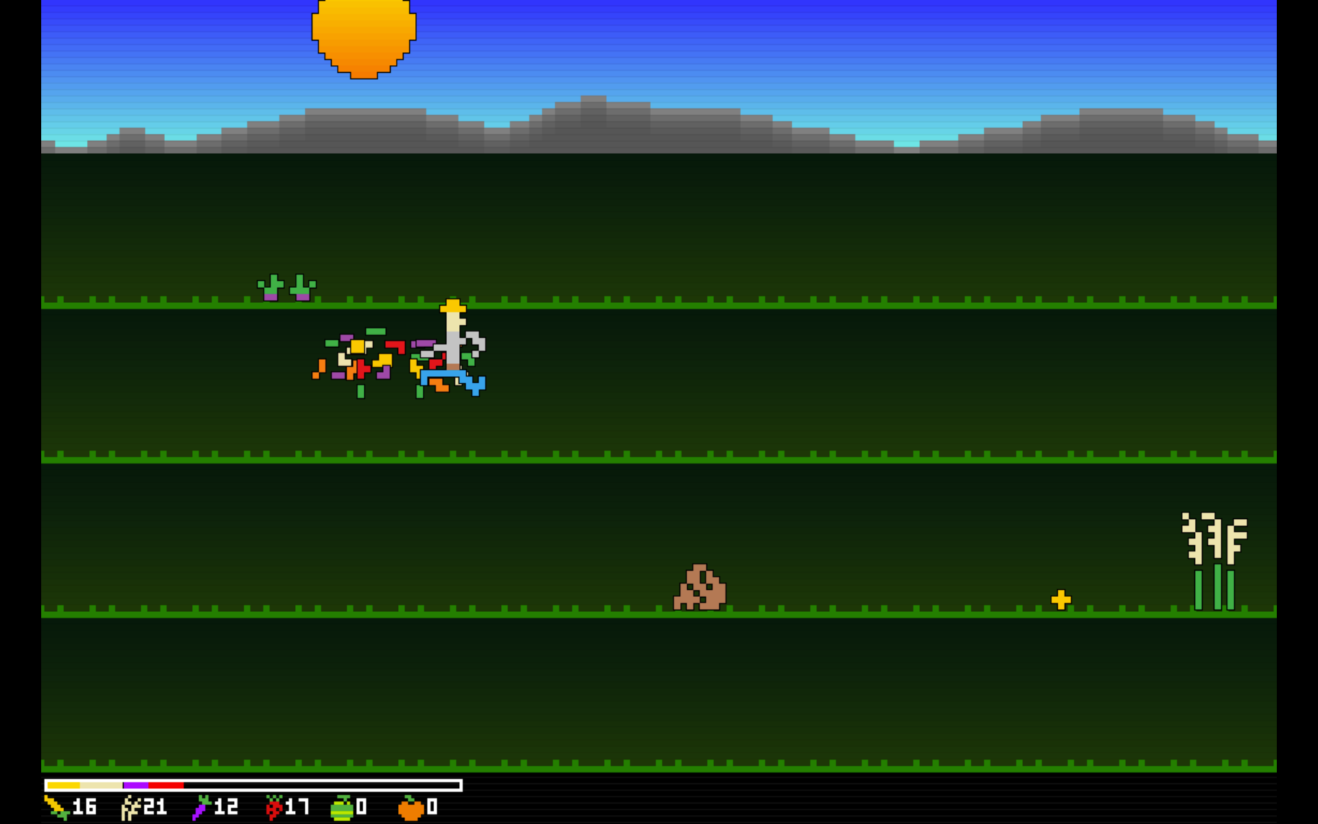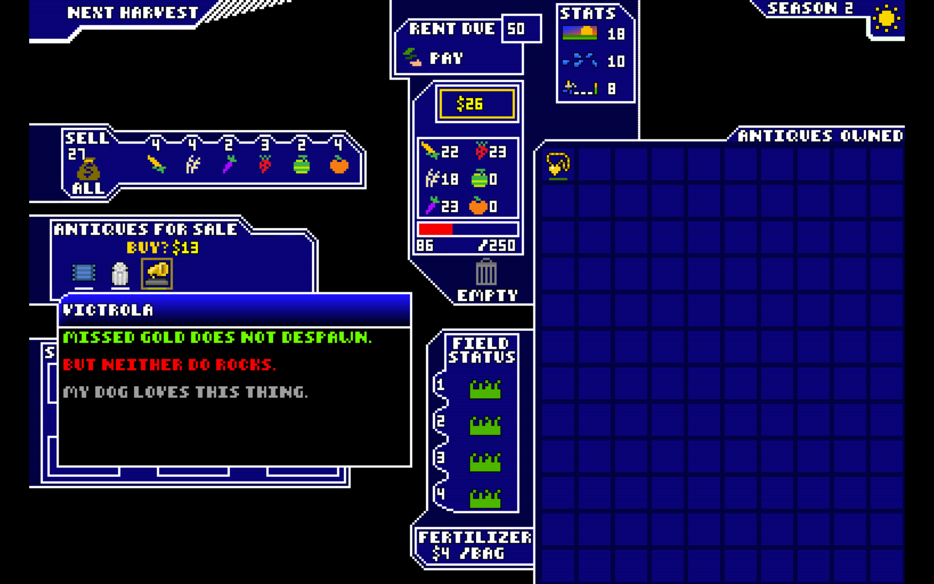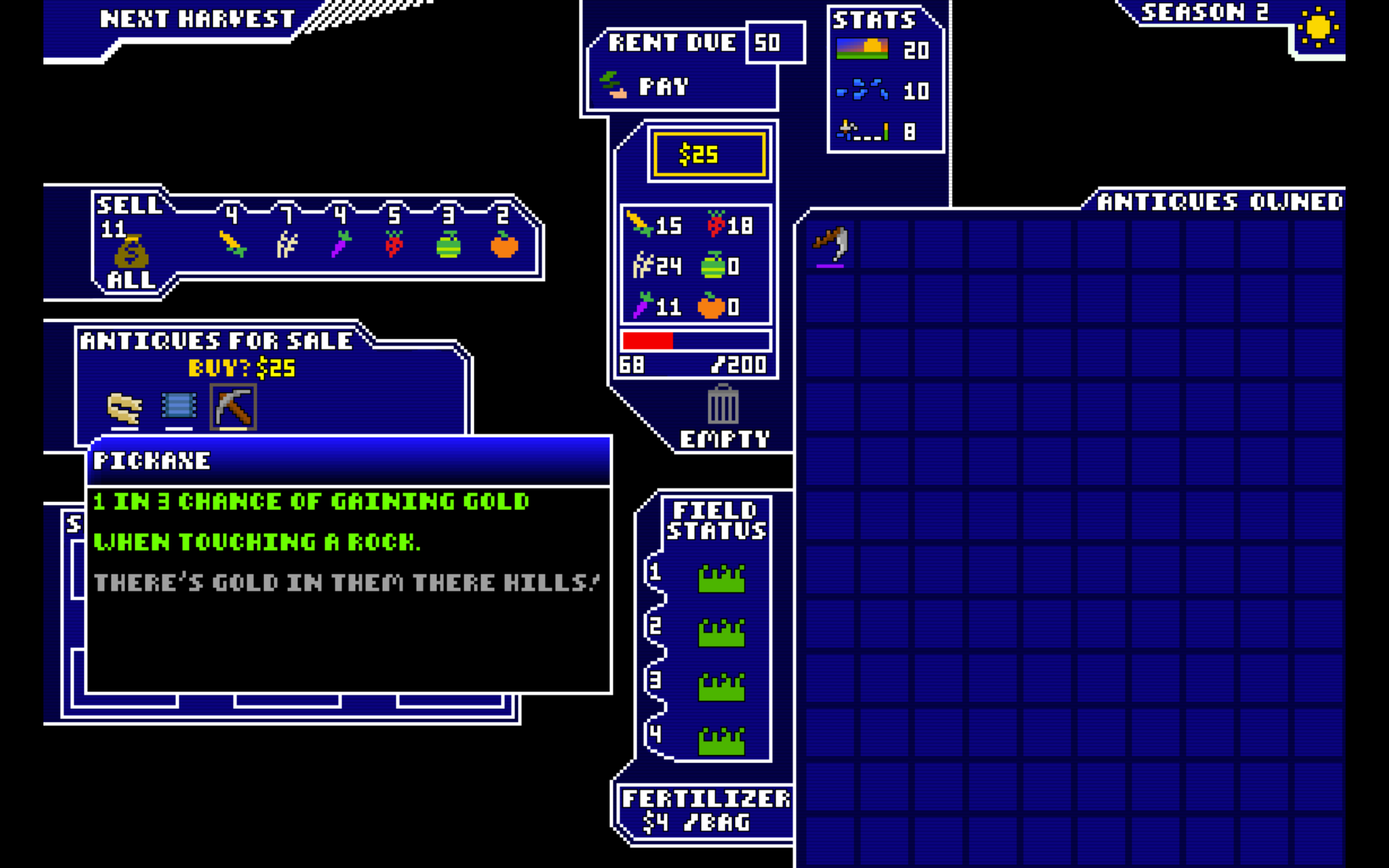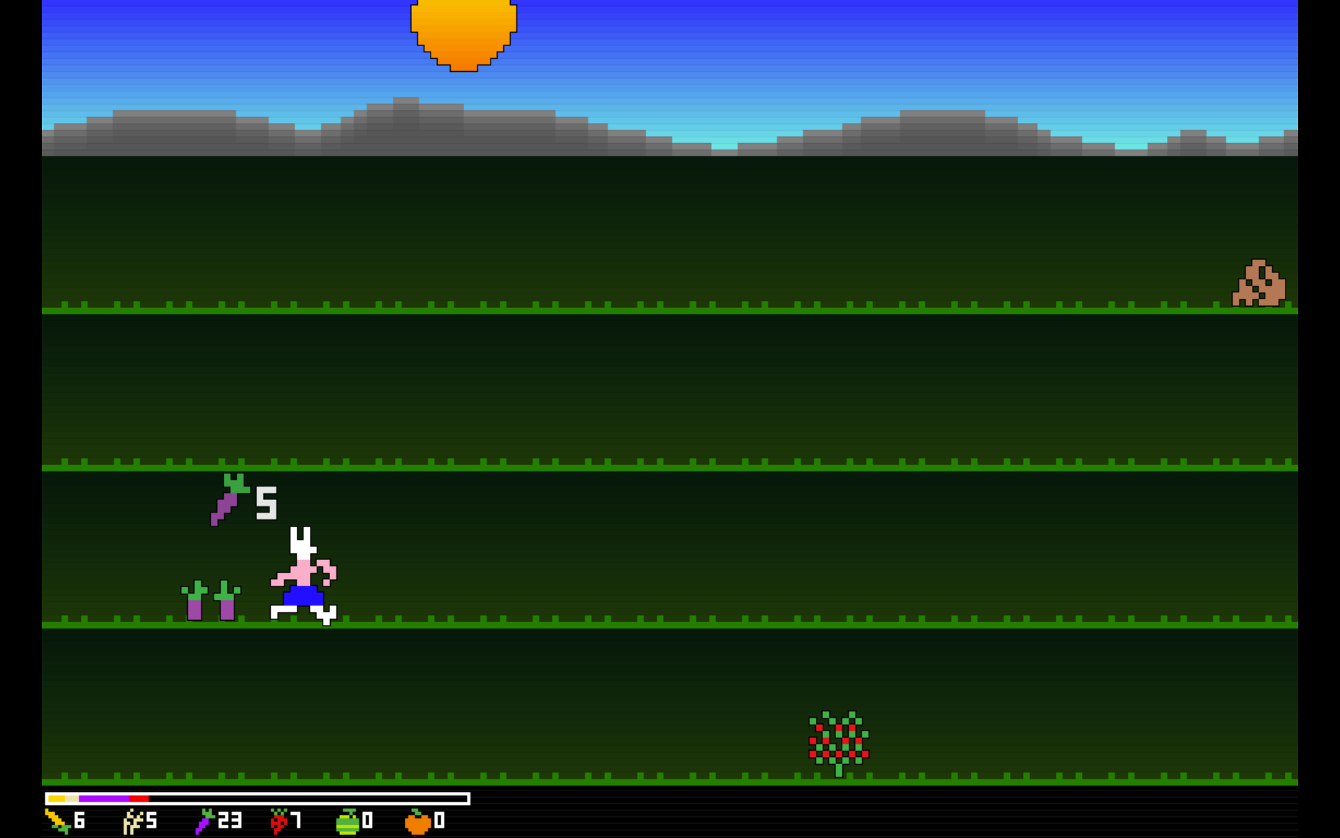 Harvest Runner is an infinite runner roguelike farming sim. Collect crops to sell at market, and balance your income to pay off your debt while collecting antiques to further enhance your abilities.